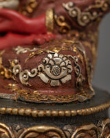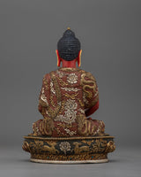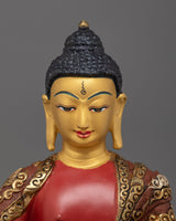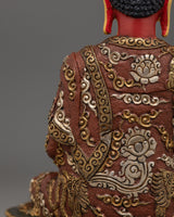The Amitabha Pure Land Buddha monument, handcrafted in the historic city of Patan, Nepal, exemplifies the centuries-old practice of metalworking. Every detail is crafted by expert artisans whose methods have been passed down through centuries. The statue's body is formed from oxidized copper, producing a timeless appearance that matches the delicate layers of gold and silver plating.