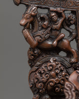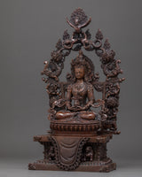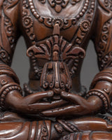 We have exquisitely hand-carved the Amitayus Bodhisattva sculpture in Nepal's traditional Himalayan art. In this statue, we have finely crafted in an oxidized copper body. We have depicted a deity seated on top of a moon disc lotus throne with a peaceful expression. It took more than a month for us to design and sculpt the statue, throne, and other essentials since we had to go into details for deft. You can use this statue on different Buddhist occasions and in regular meditational activities. We assure you that the materials used in this figurine are of high quality and will last for many years without damage or scratches.