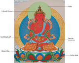 Hand-painted Amitayus Buddha of Health and Longevity, Tibetan Thangka Painting