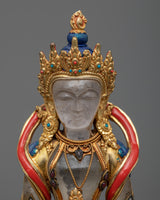 This statue is more than a visual feast; it vibrates with Amitayus' blessings of longevity, health, and everlasting wisdom, making it a beacon of spiritual regeneration and ageless grace.