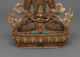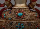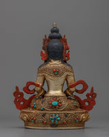 Introducing our "Amitayus Crystal Body" statue, a majestic representation of the Buddha of Infinite Life and Boundless Light. Standing 8.9 inches tall, this statue's crystal body represents clarity and eternal life. The figure is embellished with 24K gold gilding and brilliant jewels, which highlight its divine presence and detailed intricacies. Amitayus' peaceful demeanor and rich ornaments indicate his status as a deity of longevity and health.