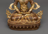Each part of this masterwork, which hails from Nepal's spiritually evocative landscapes, offers a story of ancient rites, unshakable commitment, and outstanding craftsmanship. The union of gold's eternal light and the aged appeal of rusted copper illustrates the voyage of Amitayus' blessings and the Dharani's everlasting echoes.