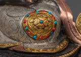 The Amitayus Mantra Practice Statue is a beautifully crafted piece made by skilled artisans from Nepal. It is made from pure copper and coated with genuine 24-karat gold. The sculpture depicts the Buddha of Infinite Light, Amitayus, who is believed to bring benefits to our lives. The statue shows Amitayus sitting in a meditational pose on a moon disc lotus with a peaceful expression and holding a vase filled with Amrita. It took over a month to complete this sculpture due to the intricate details in the robes, crown, and lotus seat.
