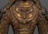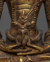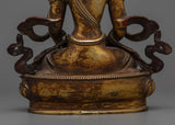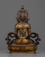 Discover peace and everlasting knowledge with our Amitayus Buddha of Long Life statue, a work of art that combines spiritual legacy with superb artisanship. Amitayus, also known as the Buddha of Longevity, has a unique place in the hearts of those seeking calm and a longer life. This statue, made of copper and gilded with 24K gold, emits a warm, inviting glow, signifying Amitayus' boundless compassion and the eternal nature of life.