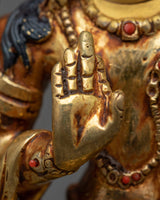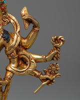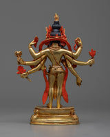 Amoghapasa Lokeshvara Statue: Known for his unwavering compassion and the "net of wisdom" that ensnared all beings from pain, this statue is a delicate yet potent representation of Avalokiteshvara's incarnation. This statue, which is 7 inches in height and 5.1 inches in base and weighs 0.64 kg, represents the boundless kindness and generosity of Amoghapasa Lokeshvara. This sculpture, which is made of a copper body and has intricate gold and acrylic paintings on it, is gilded in 24K gold and represents the unending love and saving grace of one of the most venerated bodhisattvas in Mahayana Buddhism.