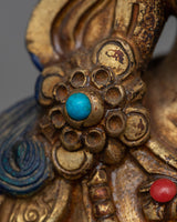 The exquisite craftsmanship pays tribute to centuries-old traditions, demonstrating excellent attention to detail and a deep understanding of spiritual symbolism. The antique finish adds to the statue's visual appeal and spiritual resonance, creating a timeless connection to Tara's benevolent energy and encouraging an environment of serenity, mindfulness, and spiritual prosperity.