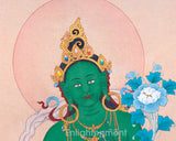 Beautiful Mother Green Tara Thangka For Mindfulness | Traditional Himalayan Thangka Painting For Ritual Practice