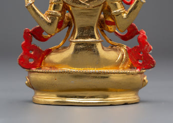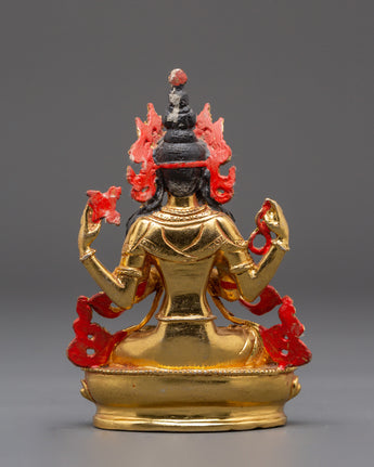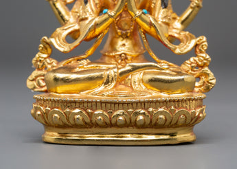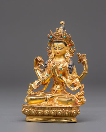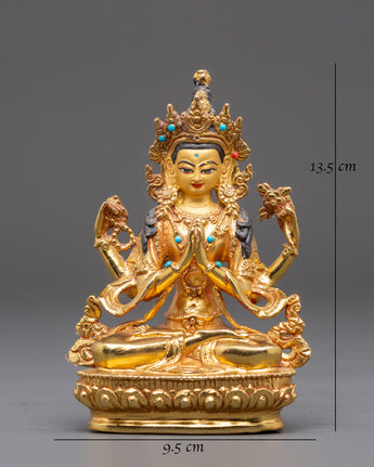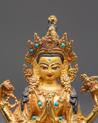 Sacred Bodhisattva Chenrezig Handmade Statue | Gold Plated Tibetan Deity Sculpture
