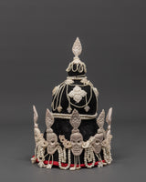 The Bone Ornament Set is a traditional and culturally significant ensemble made of sustainably obtained buffalo bone, representing the rich heritage of Tibetan and Himalayan handicrafts. This set, recognized for its elaborate design and spiritual connotation, is utilized in Buddhist rituals, ceremonial practices, and traditional Tibetan dance performances. Each component in the set, including the crown, choker necklace, armlets, apron, long necklace, and earrings, is beautifully created, demonstrating artisanal skills passed down through generations. The natural bone material represents strength, protection, and an ancestral link, making it more than just an adornment, but a sacred treasure valued for its spiritual essence and cultural significance.