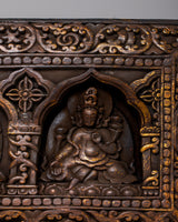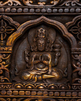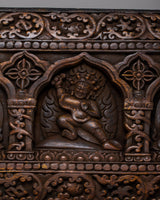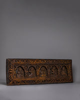 - The front cover features intricately carved deities that give visual appeal and spiritual importance.