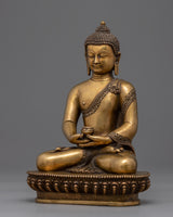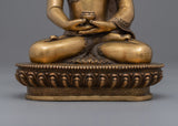 We have made this Buddha Amitabha Prayer Statue for the practitioner. By utilizing the traditional sculpting method, Our artisans have sculpted this flawless statue of Amitabha Buddha, an Infinite life deity. This magnificent figurine was created by assembling copper to create a body and genuine 24K gold to gild it. This deity is depicted as an antique statue collection in our studio. He carries a monk's bowl with his both hands, while sitting on a lotus seat.