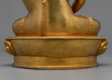 This statue, which depicts Buddha Amitabha in great detail, becomes a symbol of spirituality and artistic prowess. The sculpture, which stands 7.8 inches tall, is a true tribute to the sutra's teachings. Every detail of the deity is lovingly brought to life on a 5.5-inch-wide base. The rusted copper base tells stories of unrivaled craftsmanship, decorated with the radiance of 24k gold gilding and hand-painted acrylic decorations. Amitabha's peaceful face exudes compassion, promising guidance to his Western Paradise.