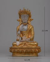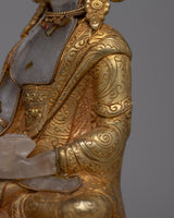 Electro gold plating on copper adorns every Shakyamuni Buddha Crystal Statue element, amplifying its brilliance and symbolic depth. The combination of materials and meticulous craftsmanship guarantees a work that expresses the profound spiritual core of Buddha's teachings and radiates visual beauty.