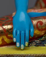 The Shakyamuni Buddha statue is meticulously handcrafted on a copper body, showcasing the artistry and skill of the craftsmen. The statue is adorned with lustrous 24k gold plating, adding a touch of opulence and radiance to the piece. The intricate details of the Buddha's features and attire are accentuated by the use of acrylic painting, bringing the statue to life with vibrant colors. The combination of the copper body, gold plating, and acrylic painting creates a stunning visual representation of the enlightened Shakyamuni Buddha, symbolizing wisdom, compassion, and inner peace.