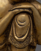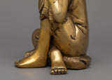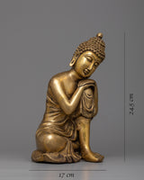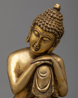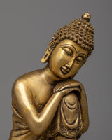 The Sleeping Buddha Home Decor Statue is carefully handcrafted on a brass body, showcasing craftsmanship and attention to detail. The statue depicts the Buddha in a reclining position, with his head resting peacefully on his knee. This posture symbolizes the Buddha's serene and meditative state during his final moments before attaining enlightenment. The brass material not only gives the statue a beautiful and timeless appearance but also adds a touch of elegance and sophistication to any home decor. This statue serves as a reminder of inner peace, tranquility, and the importance of rest and rejuvenation in our spiritual journey.