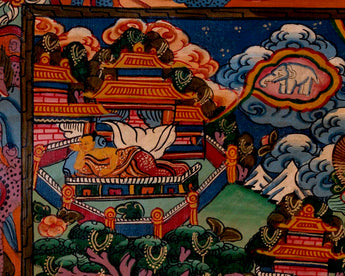 It goes without saying that every detail of a painting has a symbolic meaning. Regardless of your religious affiliation, a thangka can help you on your path to enlightenment, whether you practice Buddhism or have other religious convictions. Thangkas are paintings that depict deities with various iconographic elements and symbolism that encourage meditation on the teachings of the god they depict. Any thangka is intended to aid in the removal of the film of ignorance, which is a significant barrier to the road to enlightenment. The Thangka is revered as a holy item. They promote positivity, spread Buddhism's teachings, bring about peace, harmony, and oneness, and dispel any negative energy that may be there.