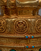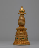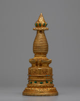 The Buddhist Altar Stupa is a revered representation of enlightenment, serenity, and spiritual elevation. It is carefully made of Copper and beautifully plated. This 22-cm-tall handcrafted stupa is a physical representation of the grace and peace of God, providing followers with a center for prayer, meditation, and introspection in their hallowed places.