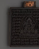 The Buddhist Chenrezig Stamp is a finely created spiritual relic designed to aid meditation, Tibetan rites, and prayer ceremonies. Standing 21.5cm tall and 20.5cm wide, this stunning artwork is a true emblem of commitment and peace. The stamp, made of wood and copper, features an elaborate hand-carved depiction of Chenrezig, the Tibetan Buddhist symbol of compassion. This flexible relic serves as a reminder to exercise compassion in everyday life and has a strong connection to Buddhist spiritual practices.