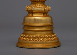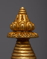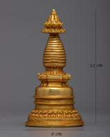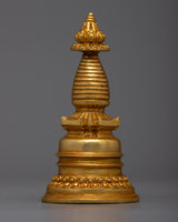 Presenting the 12cm tall, brilliantly plated 24k gold Buddhist Copper Kadampa Stupa, which is artisanal crafted to perfection. This magnificent object, crafted from fine copper, represents the core teachings of the Buddha and is a profound emblem of enlightenment and spiritual guidance.