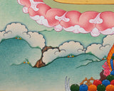 Vajrapani, revered in Buddhist tradition as the protector and guide, is vividly brought to life in this thangka through the use of Natural Stone Colors. These colors not only add a rich, earthy quality to the depiction but also symbolize the grounding and powerful energy of Vajrapani. As a deity known for his strength and courage in overcoming obstacles, the natural hues enhance his connection to the earth and the raw power of nature, offering a unique perspective for meditation and spiritual reflection.