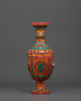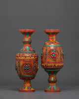 Handmade Buddhist Flower Vase Set for Decor | Tibetan Home Decor with Jade