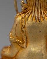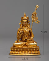 The Buddhist Master Guru Rinpoche Statue, measuring at 7.5cm tall, is a wonderful work of beauty and spirituality. This statue is composed of copper and decorated with a beautiful layer of 24k gold plating. It was crafted using precise machine molding processes. Despite its small stature, it exudes the profound wisdom and spiritual force associated with Guru Rinpoche, a respected figure in Tibetan Buddhism.