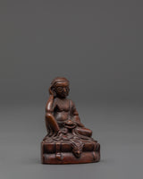 This Buddhist Master Milarepa Tibetan Statue is a magnificent tribute to one of Tibet's most renowned spiritual leaders. The statue is made of oxidized copper and is 5.5 cm in height and 4.5 cm in breadth, weighing 0.10 kilogram. It is an excellent piece for your meditation room, altar, or sacred shelf. Milarepa is seen in his traditional listening stance, his palm cupped to his ear, which represents deep concentration, awareness, and the transmission of profound truths. The robe, face features, and seating position have modest yet expressive details, reflecting the simplicity and depth of his enlightened life.