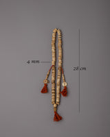 Tibetan mala beads are sacred and spiritual accessories used in meditation and prayer practices. These bead strings typically consist of 108 beads, though shorter variations exist. Each bead is carefully handcrafted from materials like wood, bone, or gemstones, and they are often adorned with a guru bead and a decorative tassel. Mala beads serve as a tactile aid for counting mantra repetitions or breaths during meditation, fostering mindfulness and concentration. They hold deep significance in Tibetan and Buddhist traditions, helping practitioners connect with their inner spirituality while embodying a sense of peace and mindfulness in daily life.