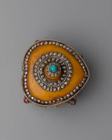 Introducing the Buddhist Metal Pot, a beautifully created object that harmoniously combines tradition and modern elegance. Handmade with care on a foundation of magnificent amber and accented with silver, its design oozes sophistication and everlasting beauty. The addition of yellow fiber material to the cup improves its visual appeal and gives warmth to any setting.