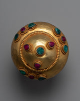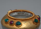 This crystal bowl has been entirely hand-carved, is crafted of copper alloy, has a flawless gold finish, and is decorated with priceless jewels for a luxurious and sensual look.