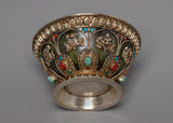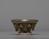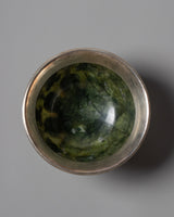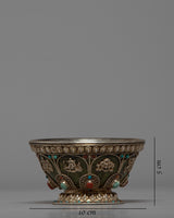 Our Buddhist Offering Bowl is handcrafted with auspicious Buddhist symbols. It's a silver-plated jade bowl with original gemstones and wonderful decoration that'll look great on your ritual altar.