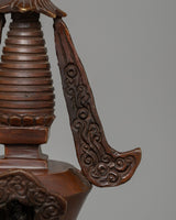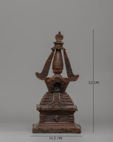 The oxidized copper finish not only enhances its attractiveness but also imparts a timeless, spiritual air. This stupa is a reminder of the Buddha's teachings and the value of inner serenity, wisdom, and compassion. Its size makes it an excellent complement to any location, whether for meditation or as part of a collection. The hand-carved copper stupa is ideal for people looking to include a bit of Buddhist heritage into their home or spiritual practice, allowing the everlasting symbol of enlightenment to inspire and guide their journey.