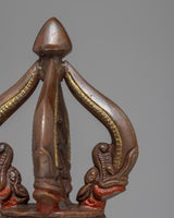 This piece, which embodies power, clarity, and enlightenment, is significant in rituals and meditation. Oxidized copper has a timeless quality that adds depth, transforming it from an artifact into a powerful symbol in spiritual practices that is suitable for both collectors and practitioners.