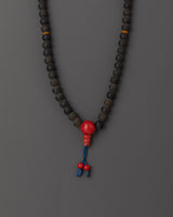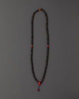 Buddhist Prayer Mala | 108 Black Stone Beads with Coral Accents