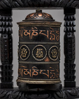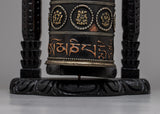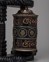 Buddhist Prayer Wheel Mantra Carved with Wooden Frame