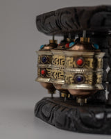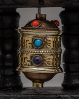 This prayer wheel serves as a focal point for introspection and reverence when it is hung on the wall. Every turn of the wheel calls forth blessings and good vibes, encouraging practitioners to partake in an age-old ritual of spiritual enlightenment and inner tranquility. Its presence in any area acts as a constant reminder of the difficult path to enlightenment and the nourishing effect that prayer has on spiritual development.