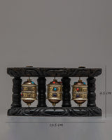 Carefully created with a copper body and placed inside a wooden frame, the Buddhist Prayer Wheel Mantra is a hallowed wall hanging. Crafted by hand with great care, it captures the spirit of spiritual practice and commitment.