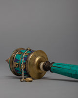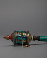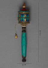 Our stunning handcrafted classic prayer wheel, with elaborate carvings of precious stones for a traditional and sumptuous appeal. Our creative artisans handcraft each prayer wheel to guarantee that it exudes a sense of spiritual connectedness and tranquillity. Recite your mantras and prayers while spinning the wheel, and let its wonderful energy to permeate your environment with heavenly blessings. Whether you're a spiritual artifact collector or searching for a one-of-a-kind addition to your holy space, our prayer wheel is an excellent choice. Buy today to immerse yourself in the beauty and tranquillity of this timeless classic.