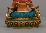 Our Buddhist Prosperity Deity Dzambhala Statue, measuring 10 cm tall and 8 cm broad, is a meticulously handcrafted Tibetan Buddhist deity figurine made of copper, plated in radiant gold, and painted with vibrant acrylic detailing. At 0.25 kg, this spiritual sculpture is ideal for altars, meditation places, and prosperity ceremonies. Gold plating denotes plenty, heavenly power, and auspicious energy, while copper improves spiritual conductivity, making this Dzambhala figure a must-have talisman for attracting wealth, prosperity, and financial security.