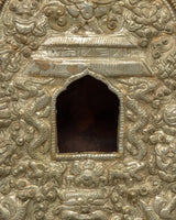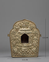 Our Buddhist Protection Ghau Box, measuring 13.5 cm in height and 11.5 cm in width, is a stunning handcrafted piece for spiritual protection and meditation. It weighs only 0.192 kg and is built of a powerful copper body with delicate silver plating, assuring longevity and elegance. This Ghau Box, which can be displayed as a centerpiece in a sacred shrine or worn as an amulet, is a versatile cultural and spiritual treasure.