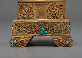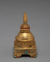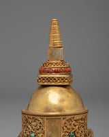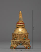 Our Buddhist relic stupa is a lovely handcrafted stupa that has been elegantly carved to give it a traditional appearance. The stupa is additionally decorated with various types of stones, with the thirteen steps neatly carved to depict the thirteen states of the Bodhisattva's journey for enlightenment.   It is a traditional Tibetan stupa that would look great in your decor.