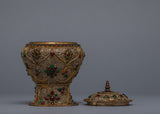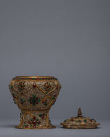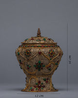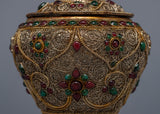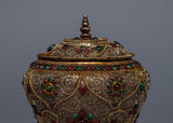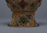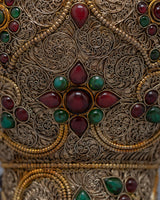Our traditional Buddhist dhupur rice pot is a beautiful work of art. It is a timeless and elegant item because of the full filigree work, gold plating, and ruby studding. It is a classic component of Buddhist rituals and a representation of prosperity and holiness. Its exquisite design, gleaming gold plating, and priceless ruby stones make it the ideal heirloom item that you can pass down through the years. This Buddhist traditional dhupur rice pot is the ideal option if you're seeking for a genuine and timeless piece.