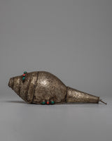 A holy object carefully made from conch shell and white metal, the Buddhist Ritual Conch Shell is a representation of spirituality and purity. This exquisitely crafted conch shell, used in ceremonies and spiritual practices, represents the core of Buddhist customs and ceremonies.