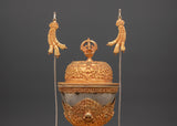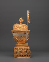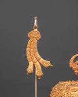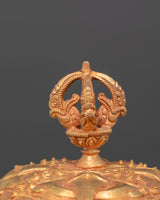 The Handmade Buddhist Ritual Cup, also known as a Kapala, is a beautifully crafted sacred tool essential for Tibetan Buddhist ceremonies. This set from copper and enhanced with gold and silver plating, it offers a striking and elegant appearance that reflects its spiritual significance. Measuring 41 cm in height and 19 cm in width, this Kapala serves as a meaningful vessel for ritual offerings and purification practices. Its traditional design not only honors ancient customs but also brings a powerful presence to any spiritual setting, making it an invaluable addition for practitioners seeking authenticity and reverence in their rituals.