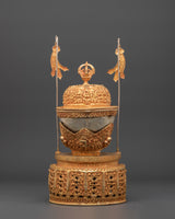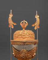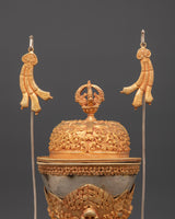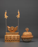 The Kapala set holds the nectar used in higher esoteric rituals. It offers liberation to gods and deities to ensure their devotion. The offerings are said to be transformed into the Wisdom Nectar, a liquid form of the deity's Enlightened Mind.