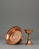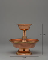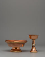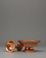 This Serkyem set, expertly created from entirely copper, has a smooth, polished appearance with fine craftsmanship, serving as both a functional ritual object and a meaningful ornamental piece. The offering bowl is placed on an elevated base, allowing liquid offerings to overflow, symbolizing abundance, dedication, and spiritual merit. Lightweight at 0.164kg, it is ideal for daily pujas, temple ceremonies, and sacred altar areas.