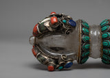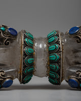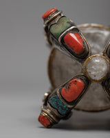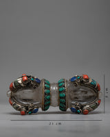 A heavily decorated Silver Vajra, hand-carved and definite, is plated with pure silver. This particular item accompanies natural gemstones. This silver vajra will be a significant gift to your companions, friends, family, and yourself.