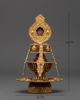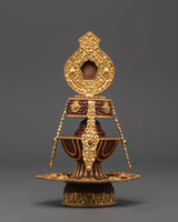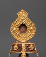 The Buddhist Ritual Vase features a copper body gold-plated to bring both elegance and spiritual significance to your altar. Designed specifically for ritual offerings, this vase serves as a sacred vessel to hold water or other symbolic substances during ceremonies. Its radiant gold plating reflects purity and devotion, enhancing the sanctity of your practice.