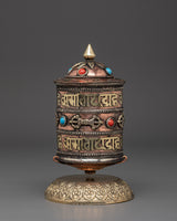 This Buddhist Ritual Wheel is a beautifully crafted spiritual tool designed to deepen your meditation and ritual practices. Standing 17.5 cm tall and weighing 0.35 kg, it is made from brass and adorned with vibrant coral and turquoise stones, adding both visual beauty and symbolic significance. Rooted in Tibetan Buddhist traditions, this wheel is believed to amplify prayers and mantras, channeling positive energy and blessings into your life. Its presence enhances any altar or sacred space, fostering a stronger spiritual connection and inviting peace, healing, and mindfulness during your meditation sessions. It is an essential piece for those seeking to enrich their spiritual journey.