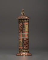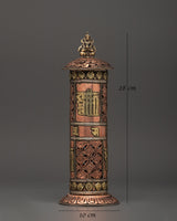 Incense burners, such as this one, have long been utilized in Tibetan ceremonies as symbols of cleansing and a means of giving prayers. The mantras written on the burner's body reflect holy chants that resonate with divine energy, providing calm and serenity to your surroundings. Crafted with precision and care, the copper and brass parts combine to create an incense burner that is useful and artistic, reflecting profound cultural importance. This incense burner is an essential addition to any Buddhist altar or meditation place, improving both the spiritual and visual environment.